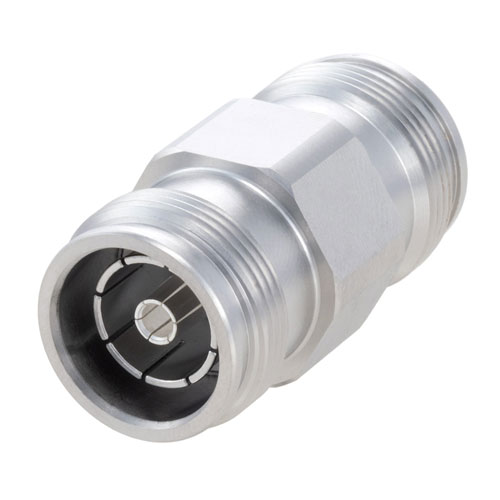 Low PIM 4.3-10 Female (Jack) to 4.3-10 Female (Jack) Adapter, Tri-Metal Plated Brass Body, 1.25 VSWR