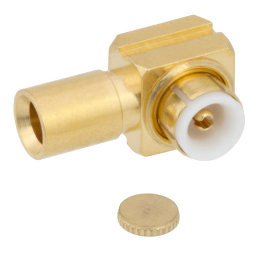 Right Angle MMBX Plug (Male) Snap-On Connector For RG405, FM-SR086CUTN, FM-SR086ALTN Cable, Solder With Male (Plug) Center Contact