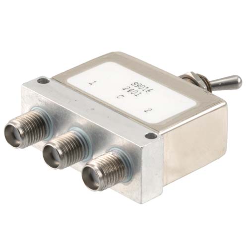 Manual SPDT Toggle Switch from DC to 26.5 GHz, SMA Female, and Rated to 30 Watts
